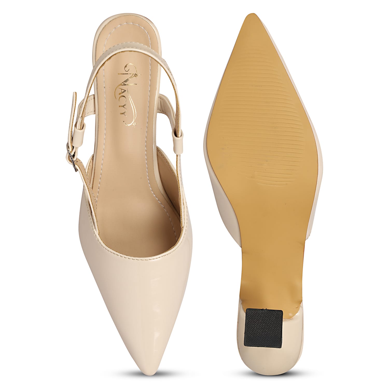 Step into effortless elegance with Nacyy Slingback Pointed Heels in a beautiful cream shade. Designed for women who love a blend of style and comfort, these heels feature a sleek pointed toe and a balanced 1.5-inch heel that gives a graceful lift without compromising comfort.