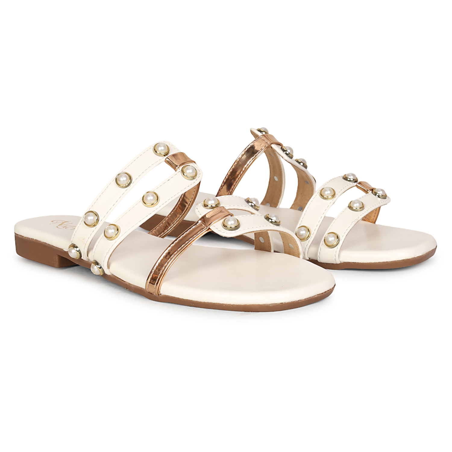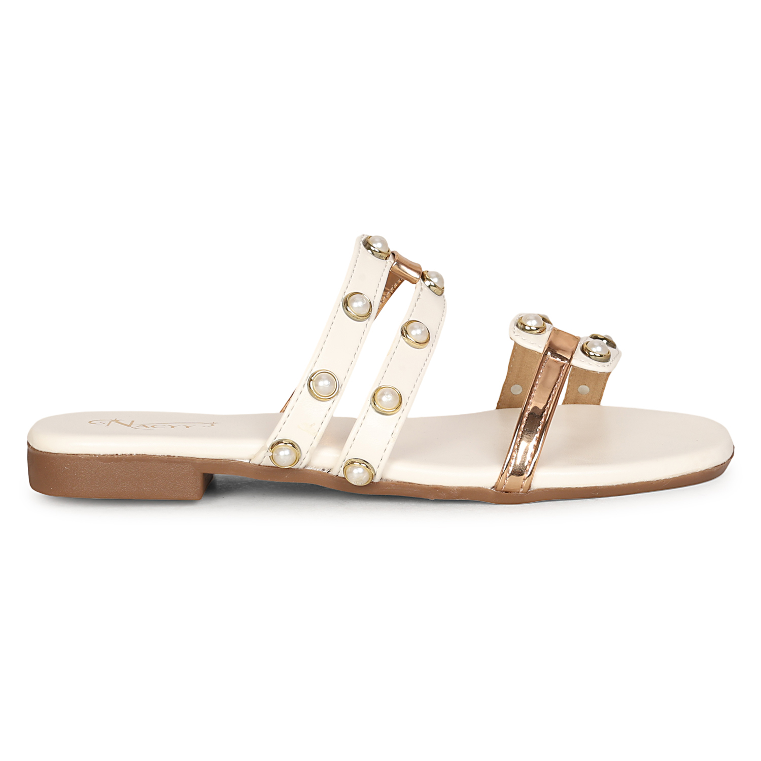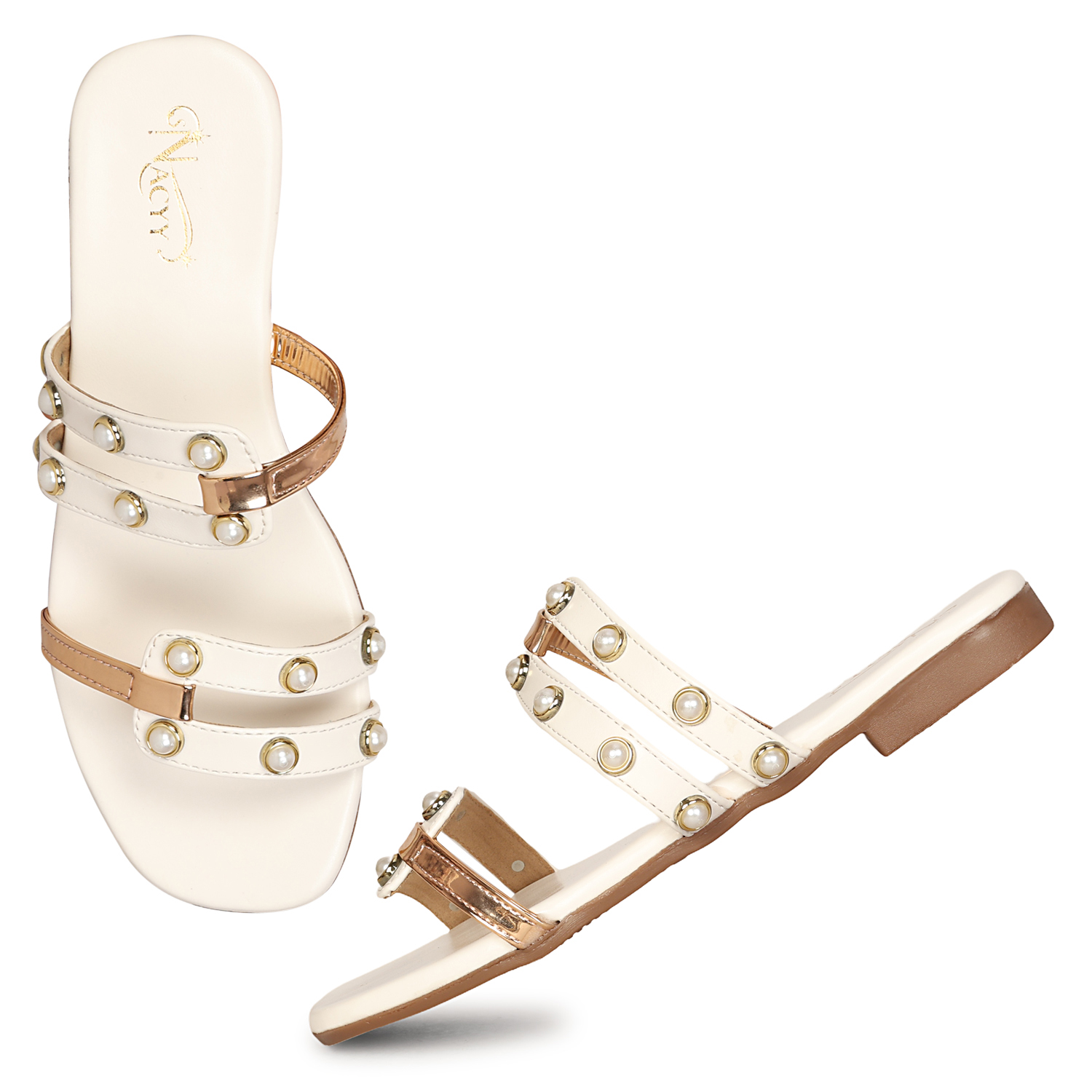 Enhance your style with these graceful Nacyy white toe-ring sandals, designed to bring a perfect blend of elegance and comfort. Featuring a beautifully crafted laser-cut synthetic upper, these sandals offer a premium and trendy look ideal for both casual and festive wear.