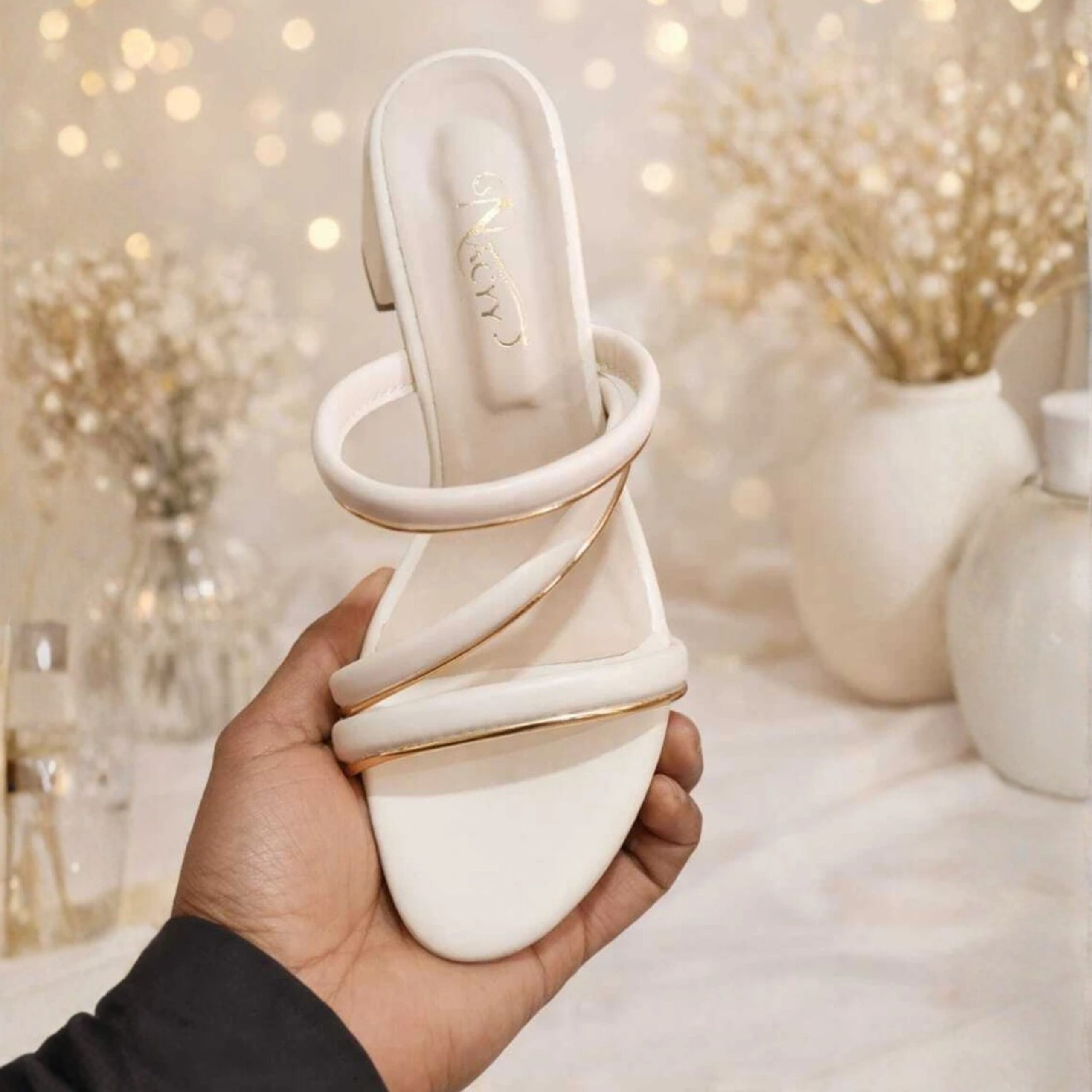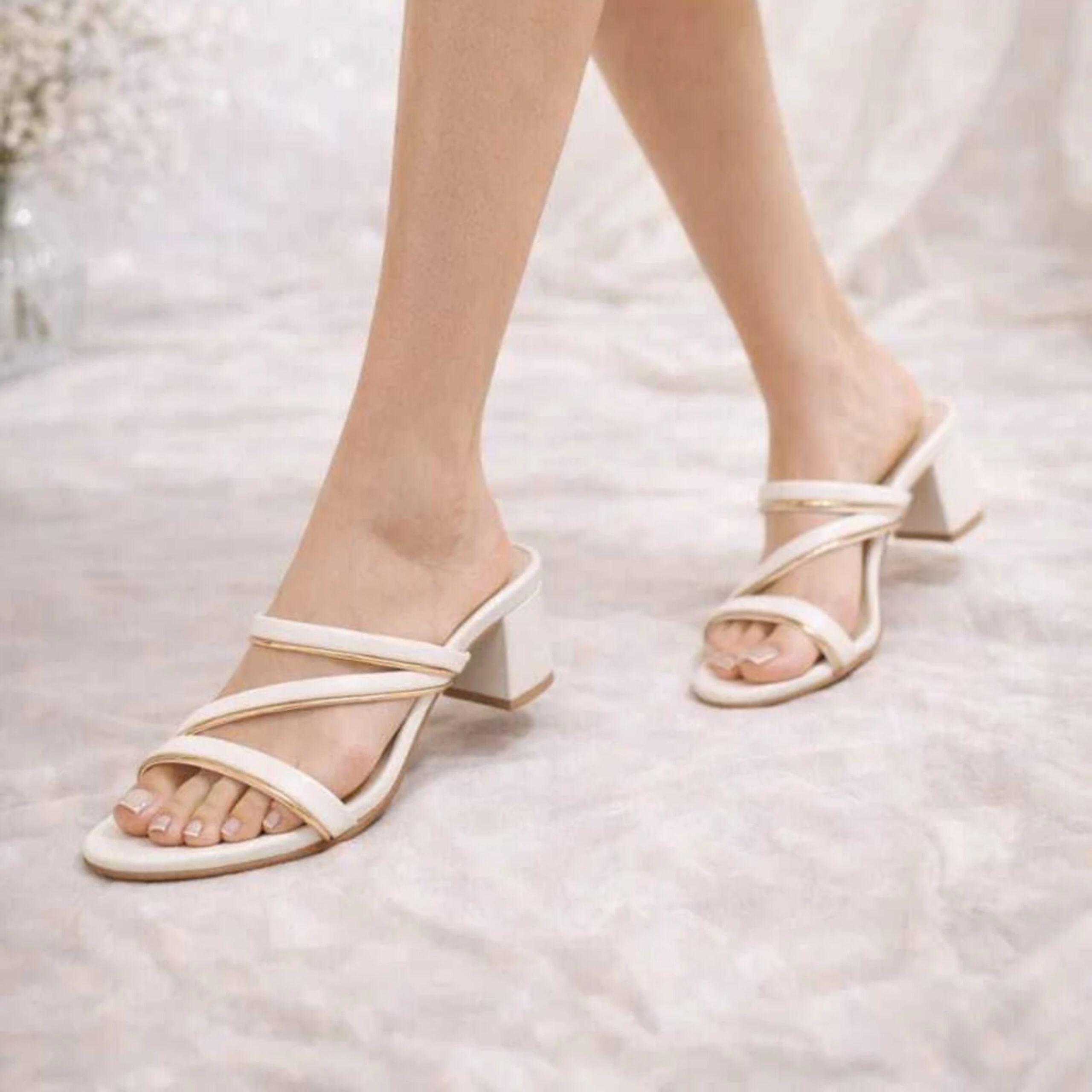 Add a touch of graceful charm to your look with the NACYY Women Heels Sandal in White. Featuring a chic criss-cross strap design highlighted with sleek gold accents, these heels bring together elegance and modern style. The soft white shade enhances your outfit with a fresh, classy appeal, making it perfect for both day and evening occasions.